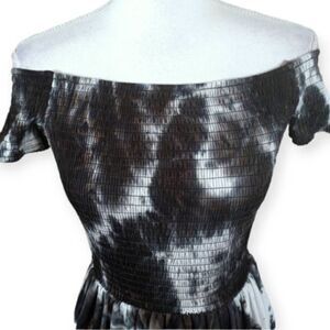 JUSTIFY BLACK & WHITE TIE DYE OFF-THE-SHOULDER DRESS SZ.S EUC.