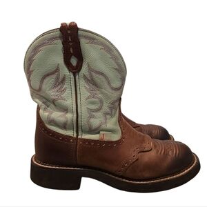 JUSTIN GYPSY CASUAL FOOT WITH BAY APACHE COWHIDE FOOT COWGIRL BOOTS. SIZE 8.5