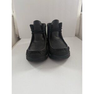The Crafton 4” Alloy Mocc Toe boot from our Stampede Light Duty collection is crafted from durable black cowhide. Featuring an alloy safety toe, slip- and oil-resisting rubber outsoles and removable Ortholite inserts for cushioned comfort, these boots will bring you from the jobsite or office to after-hours downtime with ease. These boots meet ASTM 2413 safety footwear standards.