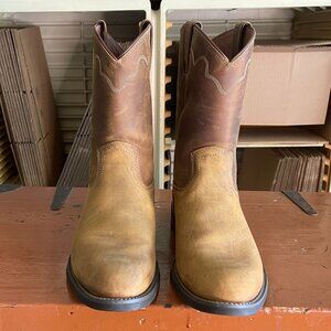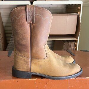 JUSTIN Men's Size 10 D Tan Apache Round Toe Ropers Brown Cowboy Boots 3902