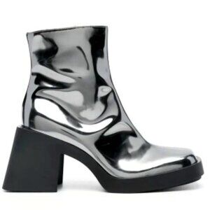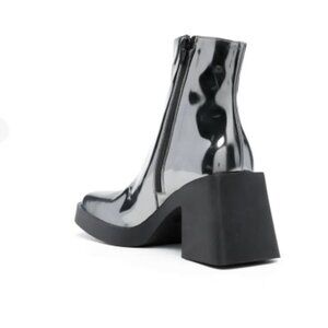 Brand new (never worn) JUSTINE CLENQUET gunmetal grey calf leather metallic finish ankle-length side zip fastening square toe high 3.1 inch (80mm) block heel rubber sole with a square toe. Interior side zipper.