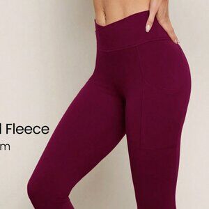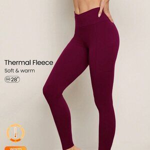 JUST'LOVE Fleece Leggings Push Up Tummy Control High Waisted Burgundy Various