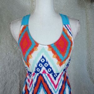JUST ME TURQUOISE PINK, ORANGE, WHITE, & BLUE MAXI DRESS SZ.S EUC