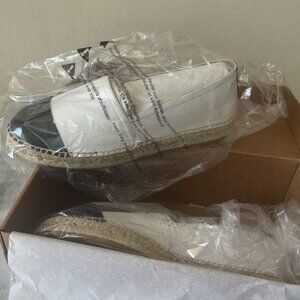 JUTELIA Made In Spain Leather Cap Toe Espadrille Flats Black White Sz.39
