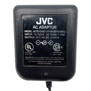 JVC AC Adapter Charger J47310-001 (41TA-D075-050) 7.5V DC 500mA Tested