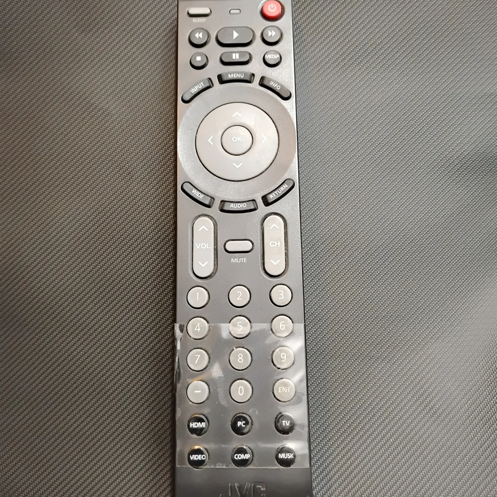 JVC remote control in classic black. Perfect for seamless device operation.