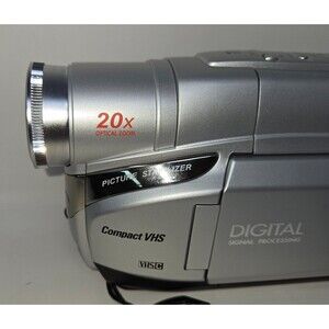 The GR-AXM17 features a compact stylish design. The 20x's optical zoom, 2.5" LCD make this VHS-C camcorder a terrific value. A flying erase head for glitch free start and stops, Digital CNR and TBC for better picture quality, insure you get the best performance. Add the convenience of a 2.5" LCD view screen and the camera can be operated from any angle, for maximum comfort. The picture stabilizer gets rid of annoying picture shake. The 800X digital zoom makes sure you don't miss any of the action. When you are done recording, the tapes play back & and can be shared in any VHS video recorder.