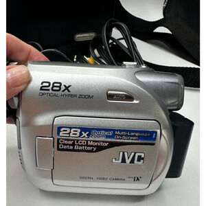 The JVC Digital Video Camera Mini DV Camcorder GR-D30U is a sleek silver handheld camcorder with a 28x optical zoom and 800x digital zoom capabilities. It features a standard definition recording definition and comes with an LCD screen for easy viewing. The camera uses MiniDV media format and has a removable storage type, making it convenient for capturing and storing memories. With component connectivity, this JVC camcorder is a reliable choice for capturing your special moments in high-quality resolution.
