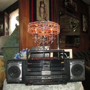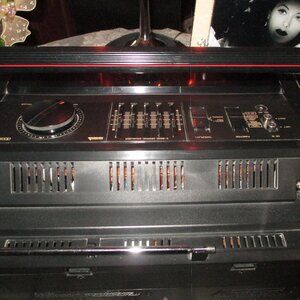 Vintage Boombox, Purchased in the 80's, Excellent Condition, Duel Cassette, Rec/Play, Play, Digital Synthesizer Tuner, 15 Preset FM Stations, 5 AM Stations, Speakers can Clip Off on Bottom and Reposition, AC 120V, Battery Compartment in Back for Travel, 25 1/2" Length, Hyper-Bass Sound, Price Includes Extra Shipping Charges