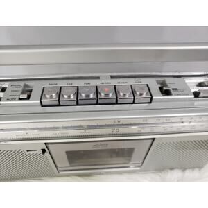 Radio is in used condition, has some scuffs and scratches throughout, some settled dust in the nooks and crevices. Includes original JCV battery adapter - Radio works as it should.