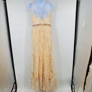 JVN Jovani Prom Forest Fairy Beaded 3D Floral Flower Maxi Formal Event Dress