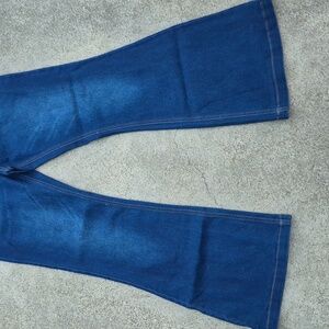 Elevate your style with these classic blue flare jeans. Perfect for any occasion, these jeans offer comfort and a flattering fit.