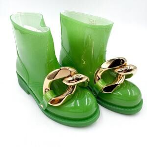 JW Anderson Chain Rain Boots Green Rubber Chunky Gold Ankle Sz 36 / 6