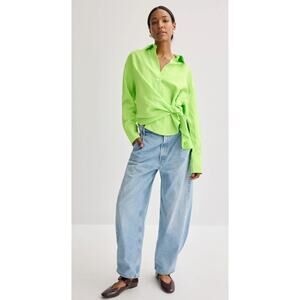 Green (77% Viscose, 23% Linen). Top. Collared. Long Sleeve. Front Button Closure.