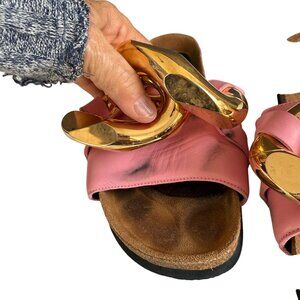 JW Anderson Leather Fuchsia Chain Slide Sandals Shoes Women's Size 36 Pink Gold