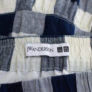 JW Anderson Uniqlo Navy Blue & White Gingham Linen Blend Tiered Midi Skirt Sz S