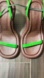 Elegant heels with a vibrant green strap and rich brown base. Perfect for elevating any outfit.