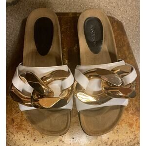 JW Anderson White Leather Gold Chain Slide Sandals Size 40 or US Size 9