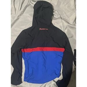 Note: Stylish and functional piece in collaboration with Japanese brand, Uniqlo and luxury Northern Irish designer, J.W. Anderson from 2018. Unique 3 color block of black, blue, and red with branding on the back. Piece is storable in a compact bag personalized for this collection.