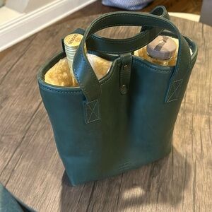 J.W. Hulme Leather Wine Tote Carrier, Holds Two Wine or Liquor Bottles, Green