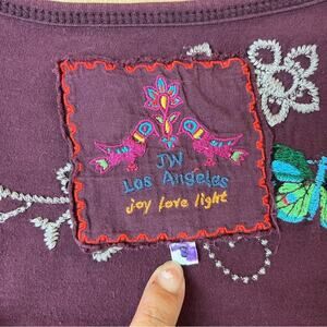 Great used condition. Size small. Has fading throughout. No rips or stains. V neck, long sleeve, embroidered, ruched front. F2