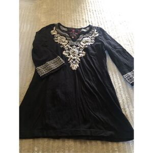 JW Los Angeles Joy Love Light Black Tunic Top Small Boho Embroidered Floral
