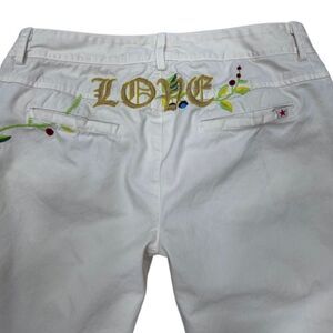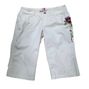 JW Los Angeles Short Capris Womens Size 4 White Low Rise Embroidered Floral Love