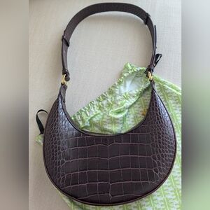 JW PEI Brown Dark Burgundy Carly Saddle Crocodile-Embossed Shoulder Bag