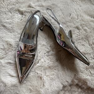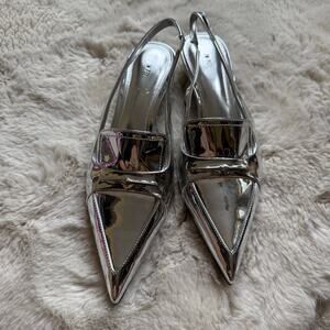 JW PEI Carla Metallic Soft Padded Kitten Heel Pumps in Silver Size 7.5