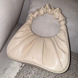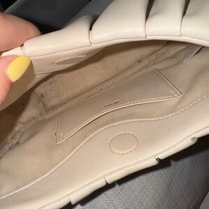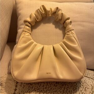 This elegant cream handbag is perfect for any occasion. Its stylish design and neutral color make it a versatile addition to your wardrobe. From JW PEI and worn as there’s some marks inside the bag but maybe you can try to clean yourself? It’s ivory — the physical picture is making it look more yellow.