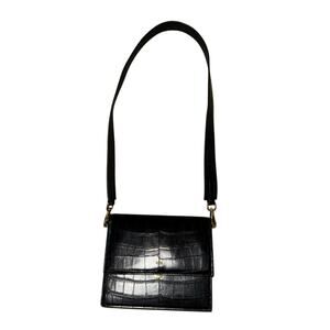 JW PEI Mini Shoulder Croc Embossed Faux Leather Bag Magnetic Lock Black ~ 8"x6"