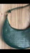 JW Pei Carly croc bag, dark green vegan leather saddle bag, crescent shoulder bag, trending JW Pei purse, green minimalist handbag, Carly style JW Pei, structured croc crescent bag, modern vegan leather shoulder bag.