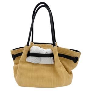 JW Pei Hana Medium Tote Bag in Tan Straw Raffia Black Trim Vegan Leather