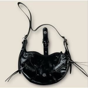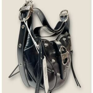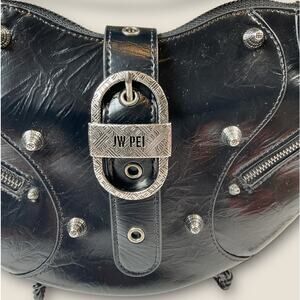 JW Pei Tessa Crushed black studded shoulder bag edgy NWT
