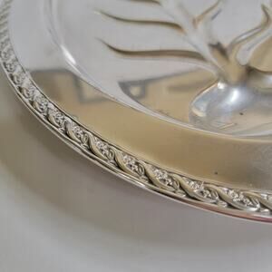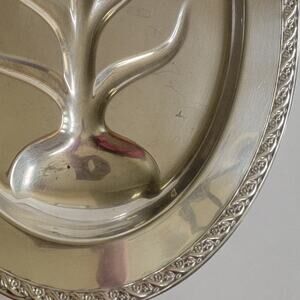 This vintage J.W. Rogers & Son silverplate meat platter, pattern “Spring Flower” (marked 2010), features a traditional tree well design ideal for retaining carving juices. Measuring 16.5" wide, 12" deep, and 1.5" high, it’s both functional and elegant for holiday meals, roasts, or display. The floral rope edge adds a refined vintage touch, complementing both classic and farmhouse table settings. Age-appropriate surface scratches and a small dent beneath one of the interior branches are present, but they do not detract from its polished charm. This is a beautiful serving piece with lasting craftsmanship and style, perfect for collectors of mid-century silverplate or those looking to elevate their tablescape. A practical and timeless addition to your serveware collection.