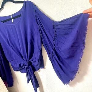 JW Style Small Blue Hippy Bell Sleeve Blouse Boho Size S-M