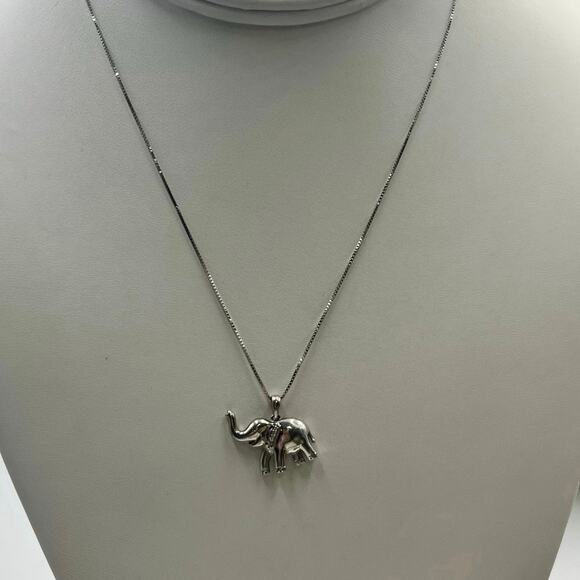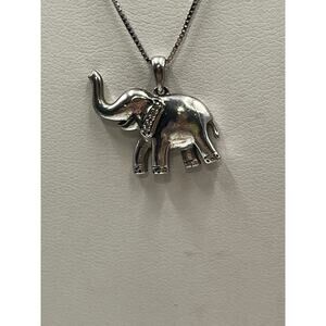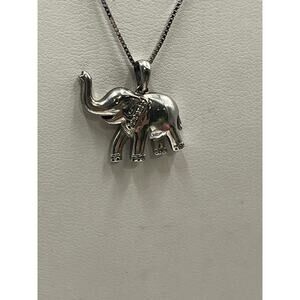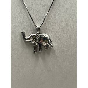 JWBR Solid Sterling Silver Diamond Elephant Trunk Up Lucky Pendant Necklace
