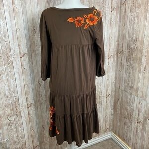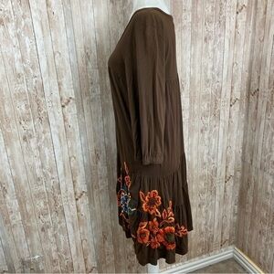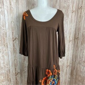 JWLA Johnny Was Brown Cotton Embroidered Boho Dress Size Medium