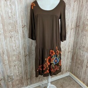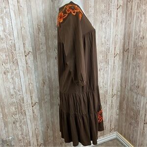 JWLA Johnny Was Brown Cotton Embroidered Boho Dress