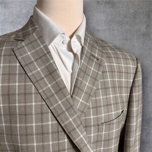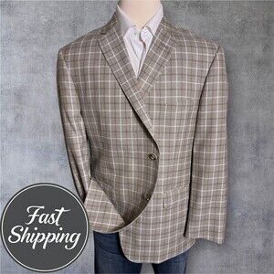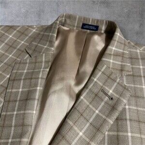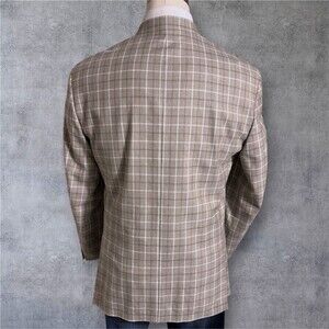 JWN 46R Wool/Silk/Linen Windowpane Plaid Blazer Sport Coat 2 Button Jacket Beige