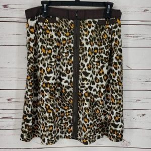 JW Woman Plus Size Leopard Animal Print Flare Exposed Zipper Skirt Size 14W