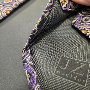 JZ Boulder X-Long Tie Purple Geometric Floral 64" x 3.5" All Silk Hand Made USA