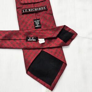 JZ RICHARDS Necktie Men's Red Silk Tie Designer Stylish Geometric Circles 60"X4"