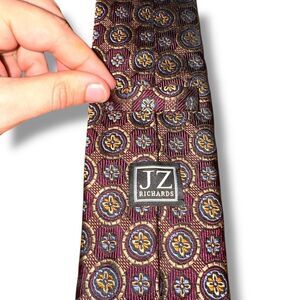 JZ Richards Boulder Burgundy & Gold Geometric Handmade in USA Silk Neck Tie