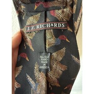 J.Z. Richards Men's 100% Silk Tie Multi-Color Duck Pattern Handmade In USA