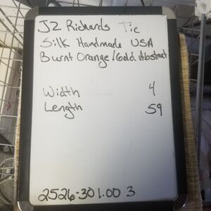 JZ Richards Tie Necktie 100% Silk Handmade USA Burnt Orange Gold Geometric 59x4 Classic Business Office Career