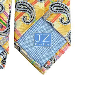 JZ Richards Yellow Paisley All Silk Hand Made USA Necktie