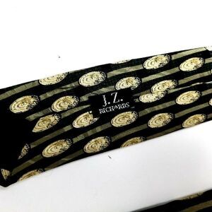 JZ Richards Silk Tie Print Green Black Geometric Wide