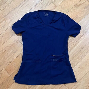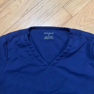 Size small women’s januu scrub top in navy color. Four pockets. One zippered. No flaws. I have five, happy to sell you multiples for lower price than individual.