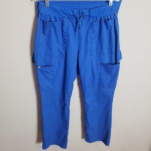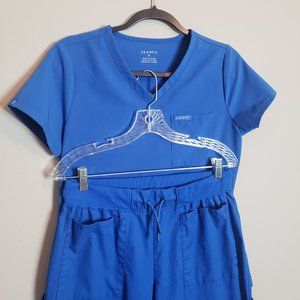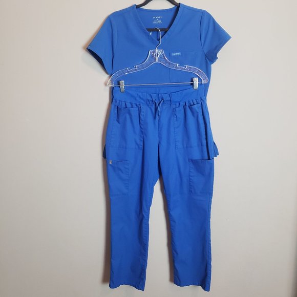 Jaanuu Royal Blue 3-Pocket V-Neck Top Small + Drawstring 6 Pocket Pant Scrub Set MP